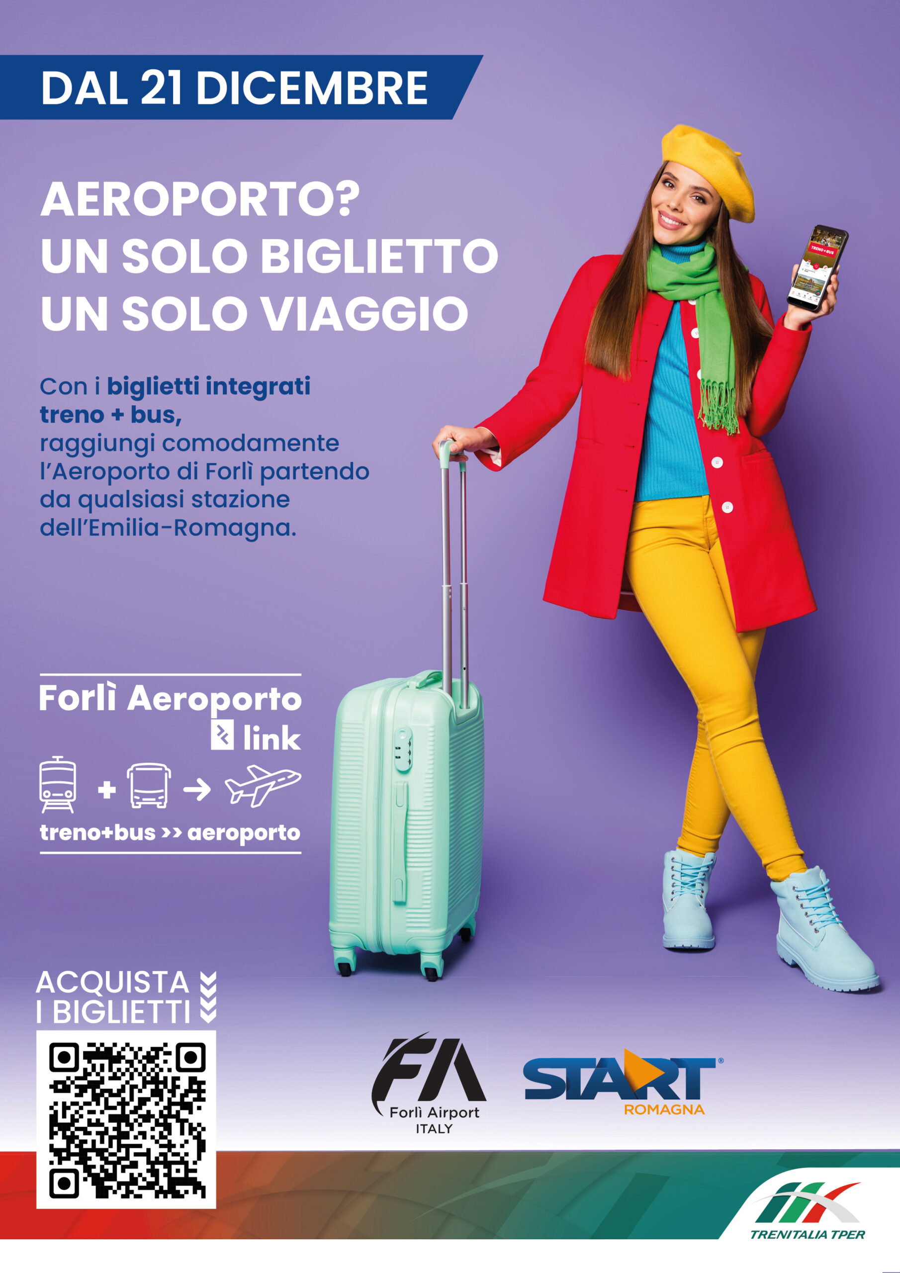 Reaching Forlì “Luigi Ridolfi” Airport is now easier and more sustainable thanks to Forlì Airport Link, the new integrated public transport service developed through the collaboration between Trenitalia Tper and Start Romagna.