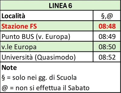 Informiamo che, da lunedì 13 ottobre, la corsa scolastica (escluso sabato) di linea 6 in partenza da Cesena Punto Bus alle 8:49 in direzione Università parte dalla stazione FS alle 8:48.