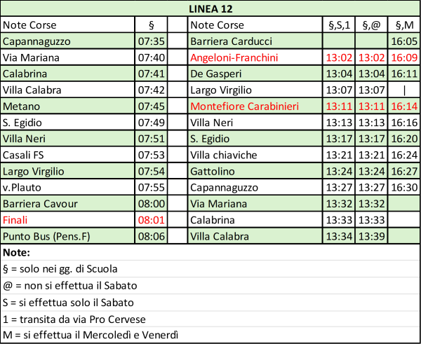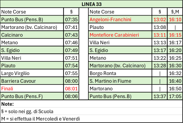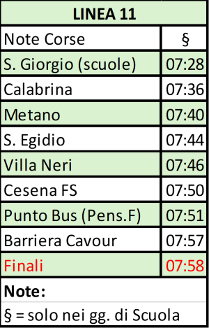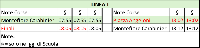 • La corsa in partenza alle 7:35 dal Punto Bus transiterà dalla fermata Finali alle 8:01.