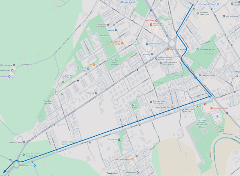 • Da Faenza FS per istituto Persolino (linea blu): raggiunta l’intersezione tra via Insorti e via da Maiano percorrono via da Maiano – v.le Marconi – via Firenze – rotonda Donatori di Sangue – via Firenze e riprendono il percorso regolare.