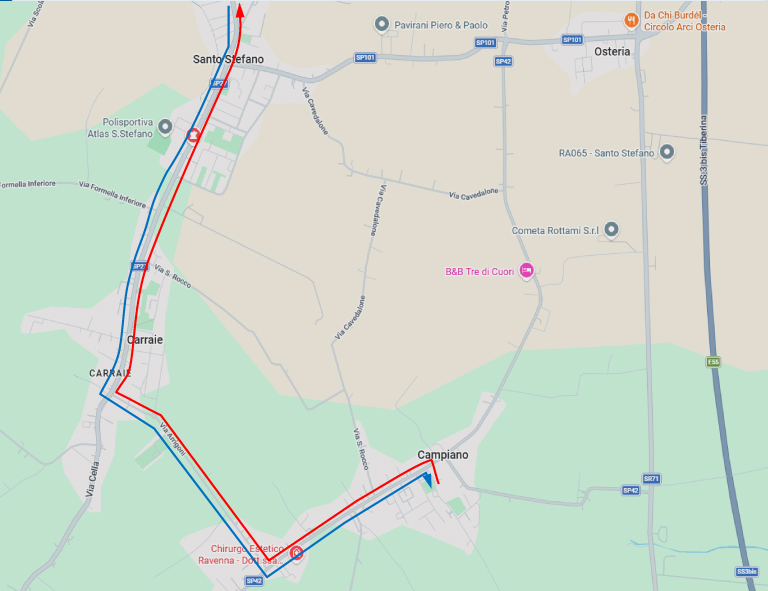 • Da Campiano per Santo Stefano in transito da via Lunga (linea rossa): da Campiano – via Petrosa – via Arigoni – Carraie – via Cella – Santo Stefano e riprende il percorso regolare.