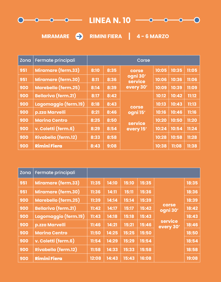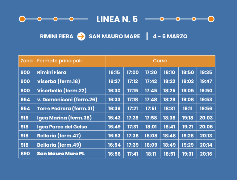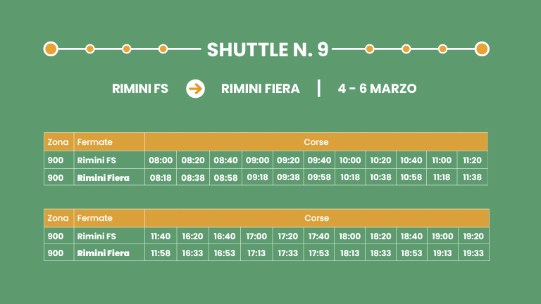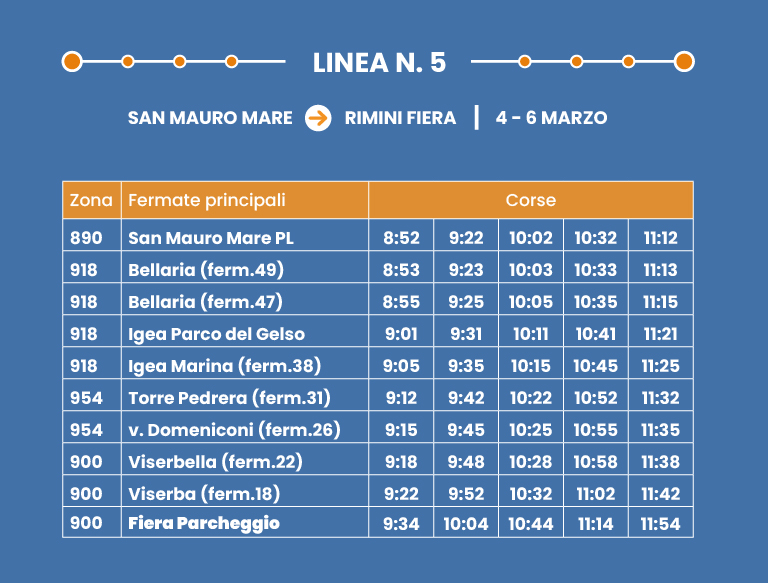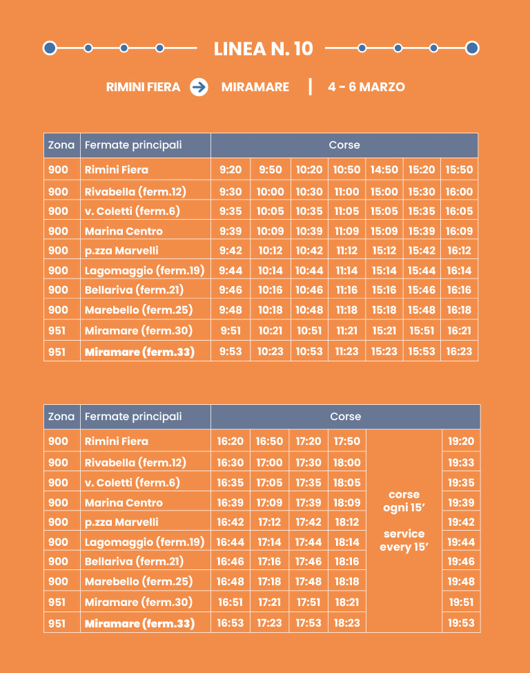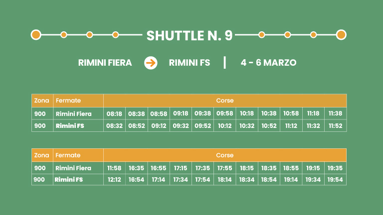 Collegamento rapido su corsia dedicata. Interscambio con Shuttle/Linea 9 a Rimini FS.