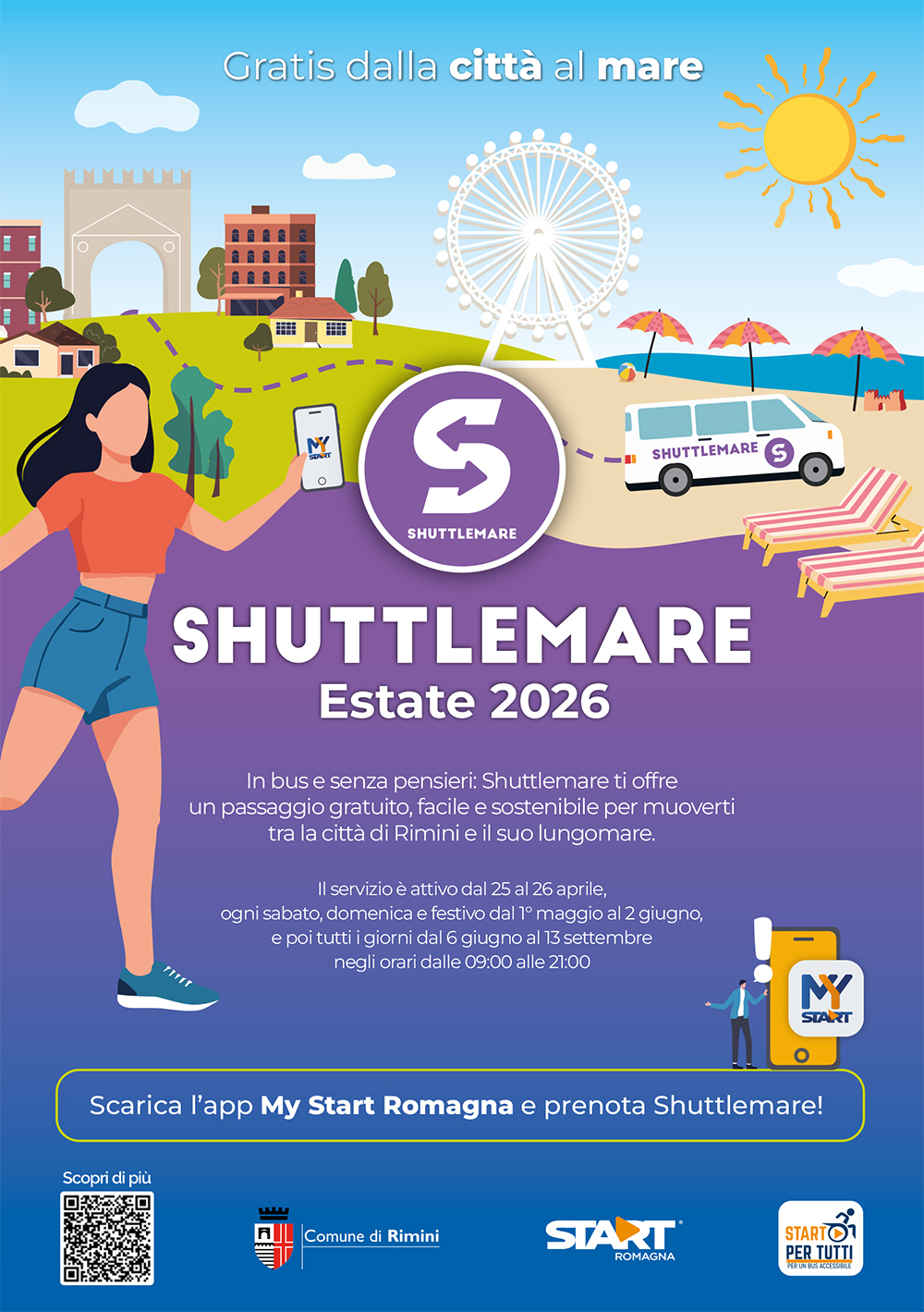 For summer 2026, Shuttlemare is back: the free service designed to connect Rimini city centre and the seafront in a simple, convenient and sustainable way. A practical solution to reach the beach and move towards the seaside with ease.