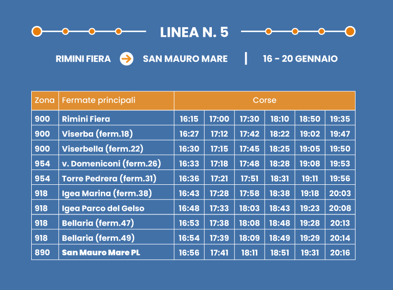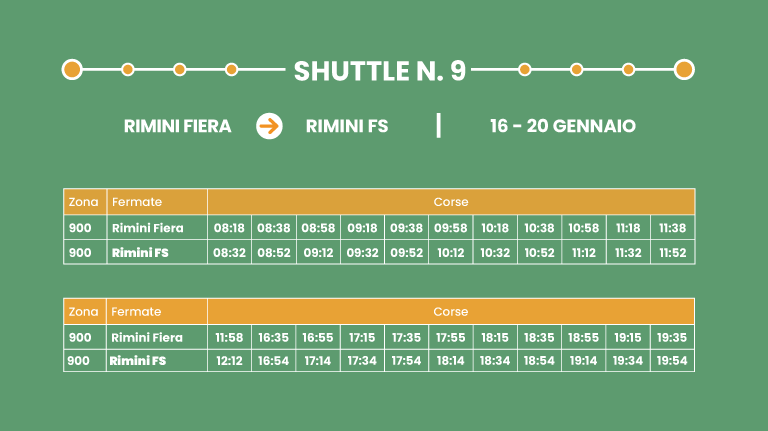 Collegamento rapido su corsia dedicata. Interscambio con Shuttle/Linea 9 a Rimini FS.